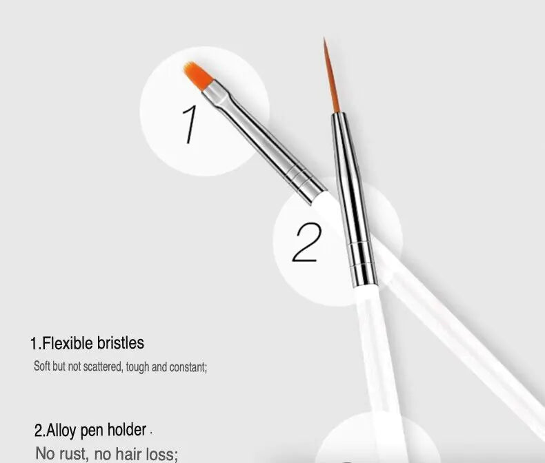 - 💅[Painting Brush] - 15pcs gel nail art painting drawing brushes including dotting tool, angle brush, fan brush, sanding brush, flat brush, painting brush, striping brush and drawing brush for drawing fine nail art. Can meet your all nail art needs.