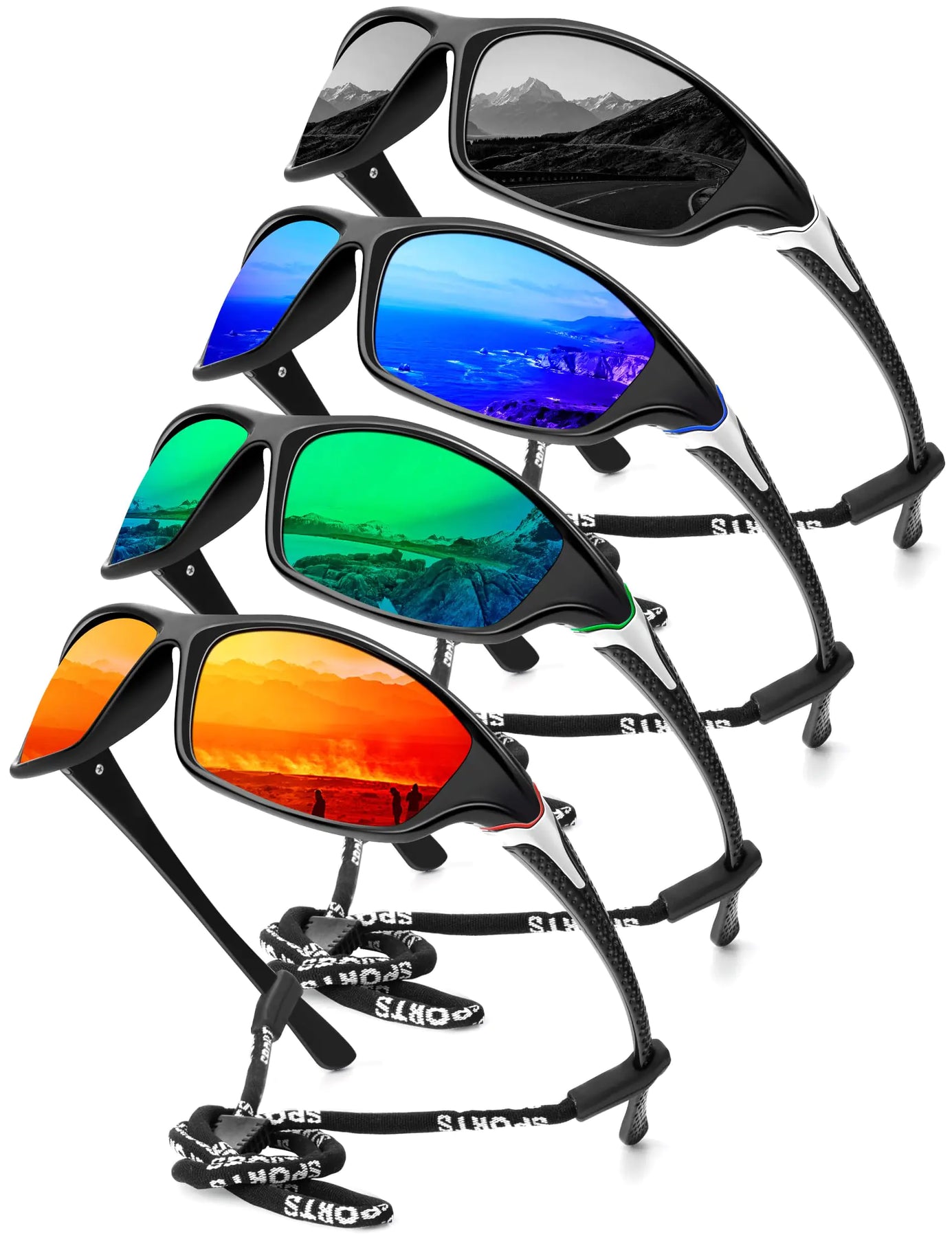 [High Definition Polarizing Lens: KALIYADI mens polarized sunglasses use high-definition polarized lenses which can eliminate reflected and scattered light eliminate glare relieve eye fatigue from prolonged exposure to sunlight and provide maximum protection for the eyes. The sunglasses for men can block harmful UVA and UVB rays and restore true colors to make the scenery clearer and softer perfectly protecting the eyes. Comfort and Durability: KALIYADI sunglasses men are made of lightweight and high-quality materials with a light frame and high-definition polarizing lenses so they are very comfortable. KALIYADI mens sunglasses polarized uv protection classic design frame adopts light and strong structure. This pair of mens sunglasses polarized also has an integrated nose pad which can ensure that the glasses will not deform during the movement so that you can easily and happily carry out various sports. "Fashion Design: KALIYADI running sunglasses for men complement classic style with a simple and modern design perfectly matching various face shapes and clothing. The dot shaped embossed design and metallic accessories add a sense of fashion to the wearer. This pair of mens sunglasses is also a functional accessory that can showcase different styles and enhance your external image. These sunglasses can make you the focus of attention and show extraordinary fashion charm." "Outdoor Activity Partner: KALIYADI polarized sunglasses men sports are designed to meet all sports needs due to the ultra lightweight frame design and anti slip design that allows you to experience versatility. Whether youre running cycling fishing traveling or driving these running sunglasses provide ultimate protection. The sunglasses men polarized are designed with high-definition durable materials and provide complete UV protection making them an ideal companion for any exercise." Gift Creative Package and Brand Customer Service: 4 classic sunglasses 4 microfiber bags 4 microfiber eyeglass cleaning cloths 4 eyeglass straps and 1 gift box. KALIYADI mens sport sunglasses are also gift wrap making them an excellent gift for family and friends! All KALIYADI cool sunglasses customers enjoy our brand customer service for bicycle sunglasses. The integrity of each box and the quality of the lenses are double checked by a third-party company. This is lifelong support!]