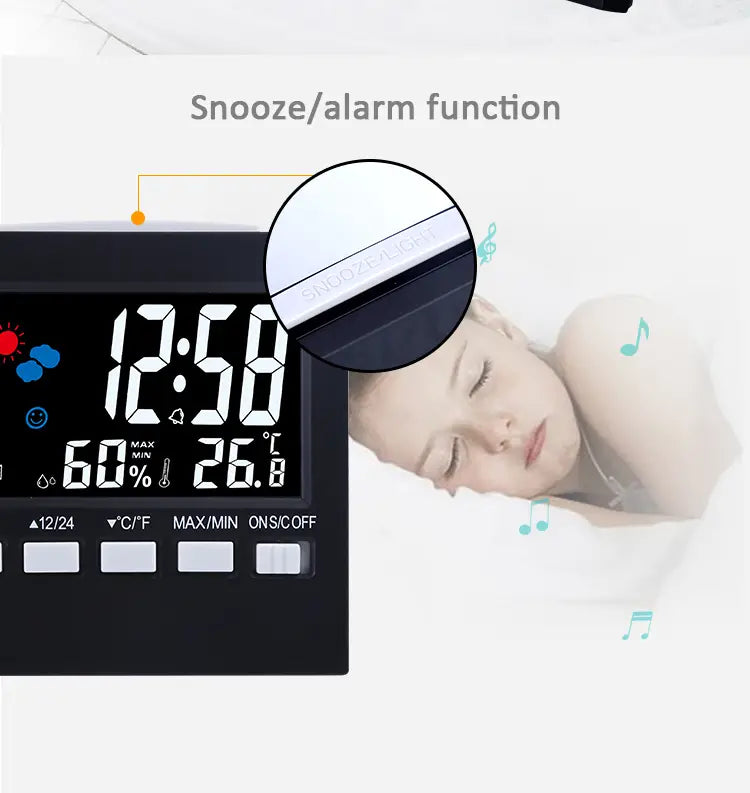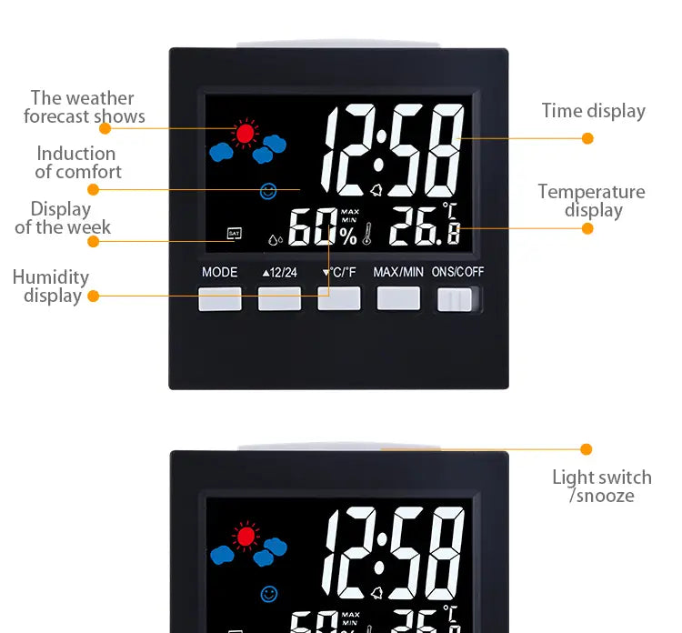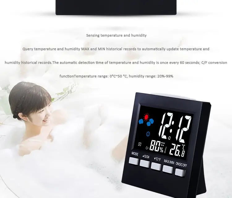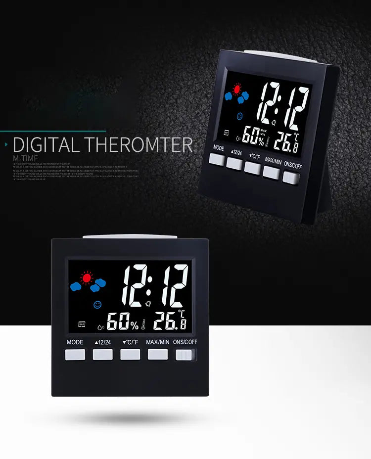 Transform your home environment with our multifunctional LCD Digital Thermometer Weather Station Clock. Designed to enhance your daily life, this innovative alarm clock not only tells the time but also provides vital information about your room's temperature and humidity levels.