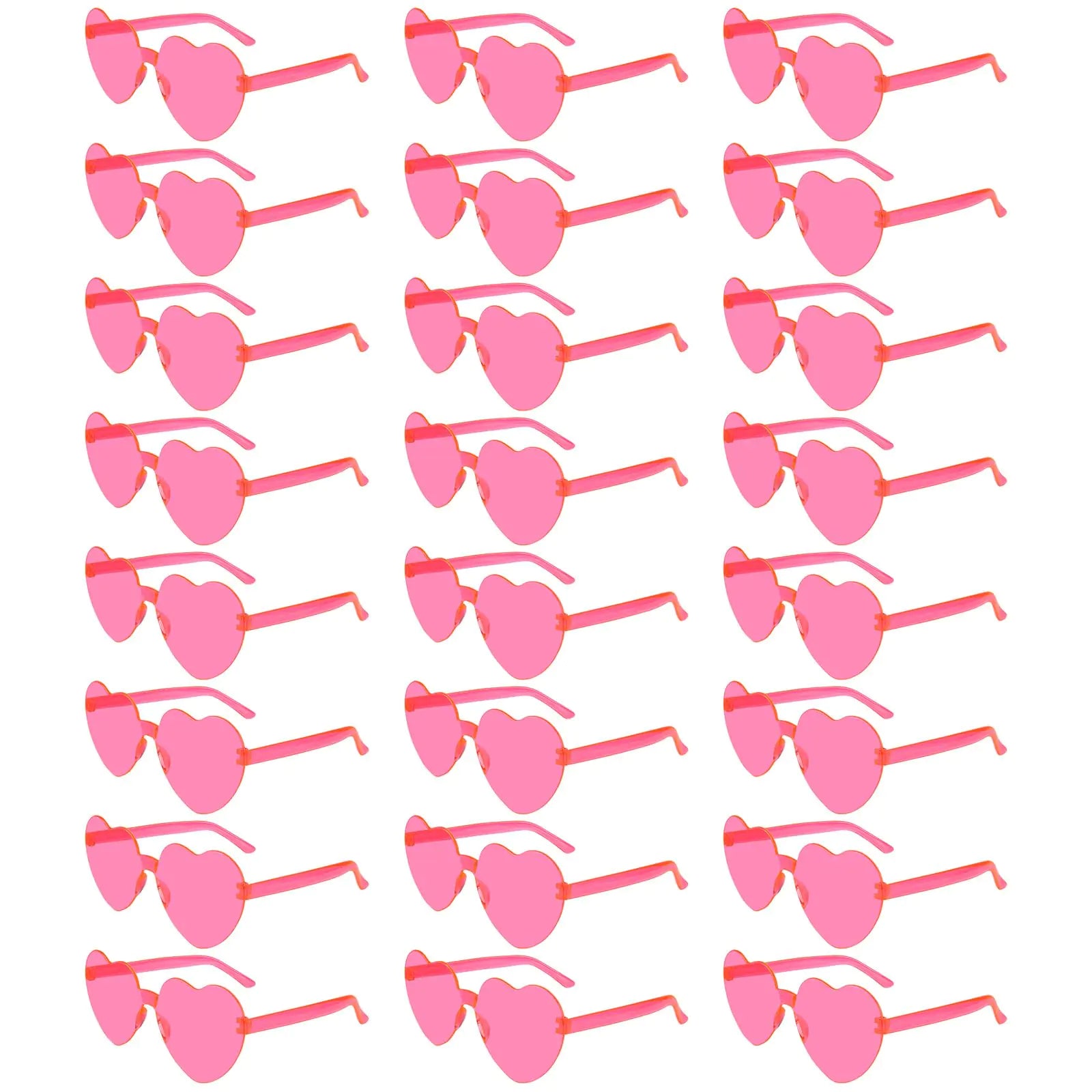 NACHLYNN 24 Pairs Rose Red Heart Sunglasses for Women Rimless Heart Shaped Sunglasses Candy Heart Glasses for Party Favors