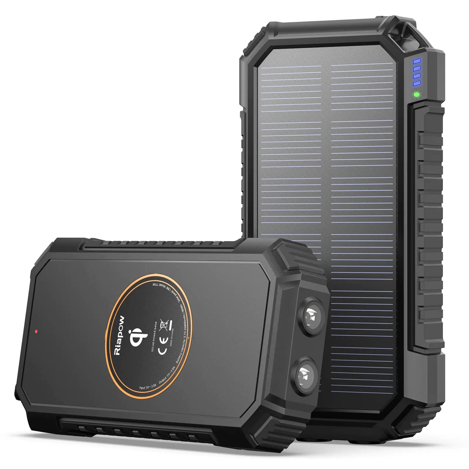 Riapow Solar Power Bank 26800mAh, Wireless Portable Charger with USB C Input/Output Fast Charge 3.0A Solar Charger External Battery with Flashlight for Phone, Tablet and Camping Outdoors