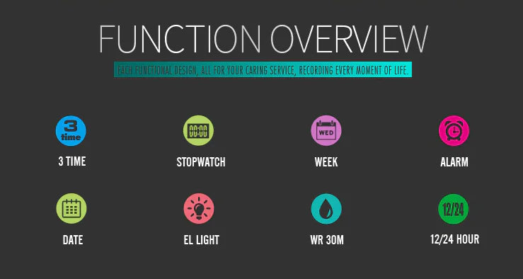 • Waterproof for 30M, Hand wash, rain day, sweating the watch water resistant.