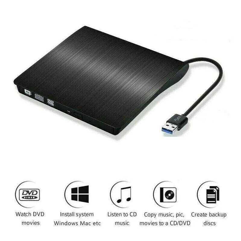 - 1 x Slim External CD DVD RW Drive USB 3.0 Writer Burner Player Black For Laptop PC
