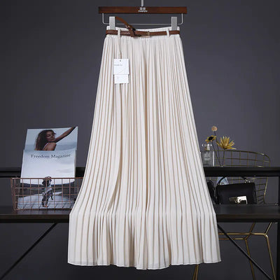 "Pure Color Chiffon Pleated Mid-Length Swing Skirt"