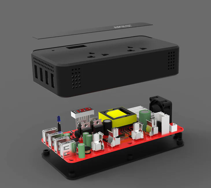 Crafted from durable ABS material, our inverter guarantees longevity and reliability. It features a user-friendly design that enables you to easily replace the controller on your own, offering you convenience and control. The real-time voltage display keeps you informed, while the integrated safety protection powered by a cooling fan ensures that your devices remain safe from overheating.