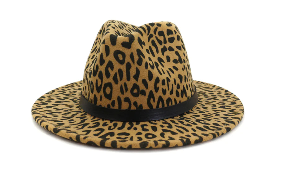Step into the world of style and sophistication with our stunning Leopard Print Jazz Hat. This unique piece is not just a hat; it's a statement that complements any outfit, whether you’re dressing up for a special occasion or adding flair to your everyday look.