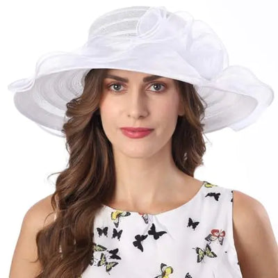 Womens Organza Church Kentucky Derby British Fascinator Bridal Tea Party Wedding Hat Summer Ruffles Cap(Hj23-White)