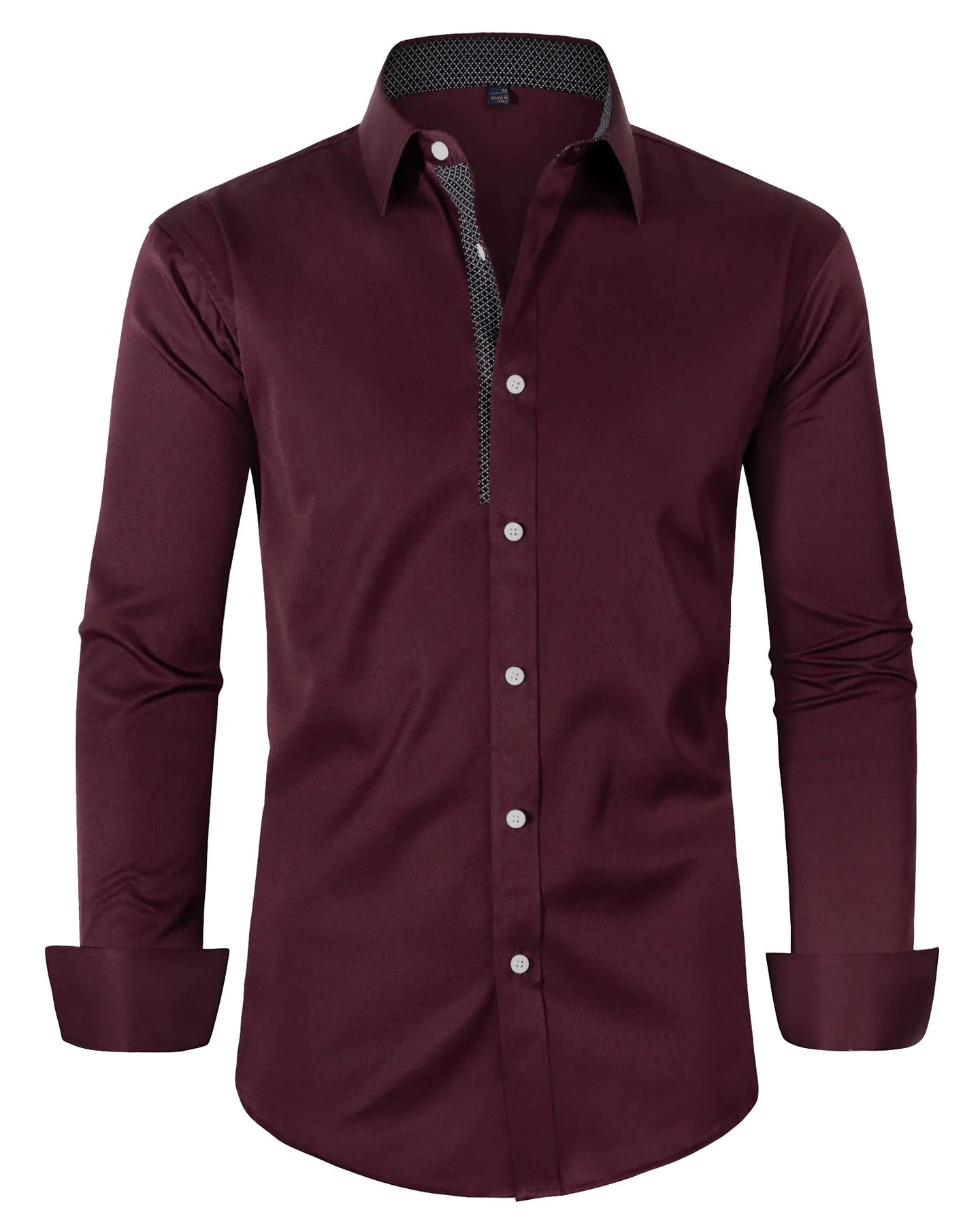 Alimens & Gentle Mens Dress Shirts Long Sleeve Stretch Wrinkle-Free Business Casual Collar Contrast Button Down Shirt Wine