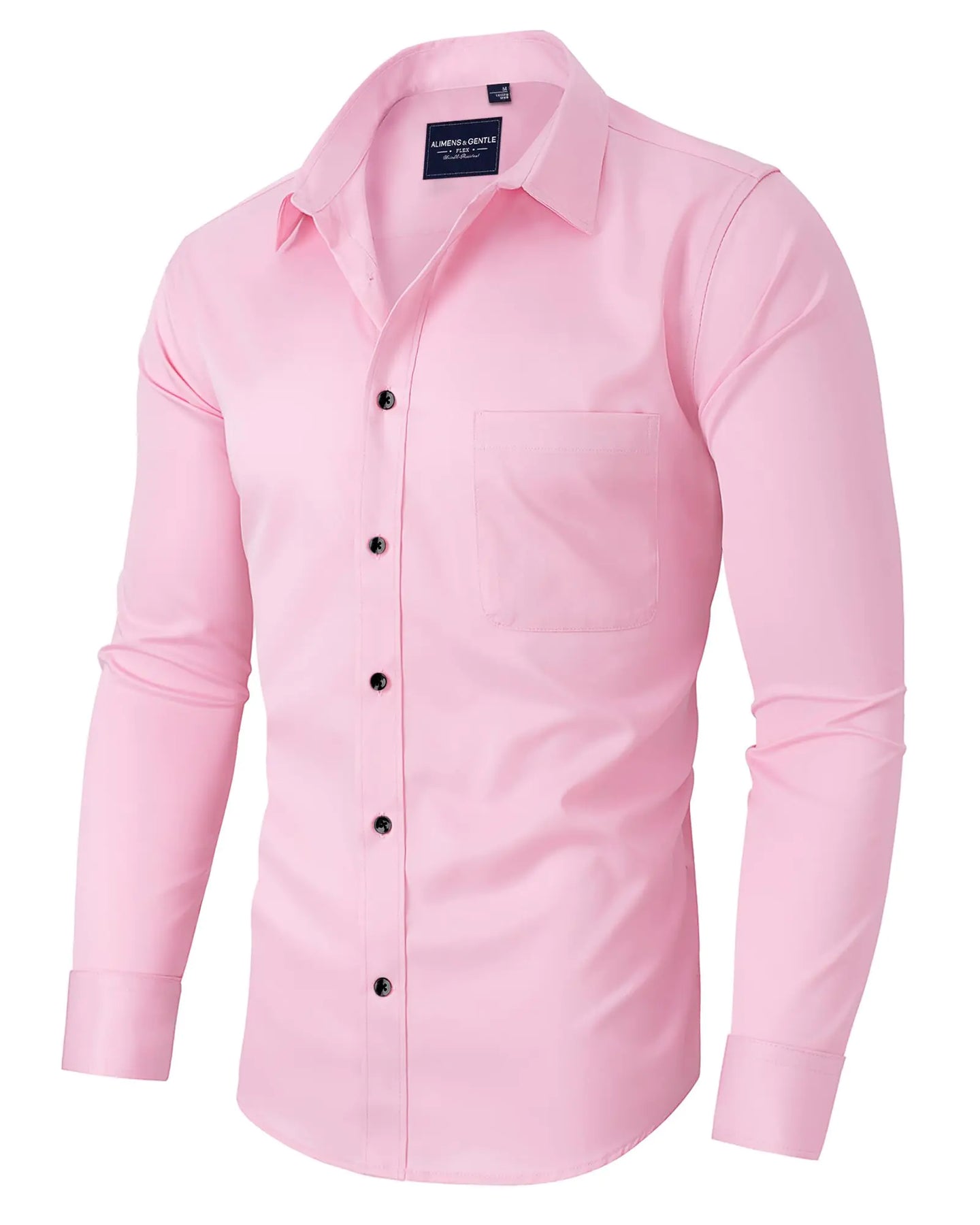 Alimens & Gentle Mens Dress Shirts Long Sleeve Wrinkle-Free Stretch Shirts Solid Formal Button Down Shirt with Pocket