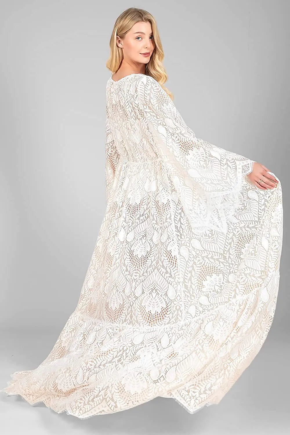 The intricate lace cardigan detailing adds a touch of sophistication, making it an essential piece for your bridal collection. Whether you're preparing for your big day or capturing beautiful moments with friends, this robe is sure to elevate your look and provide a sense of romance.