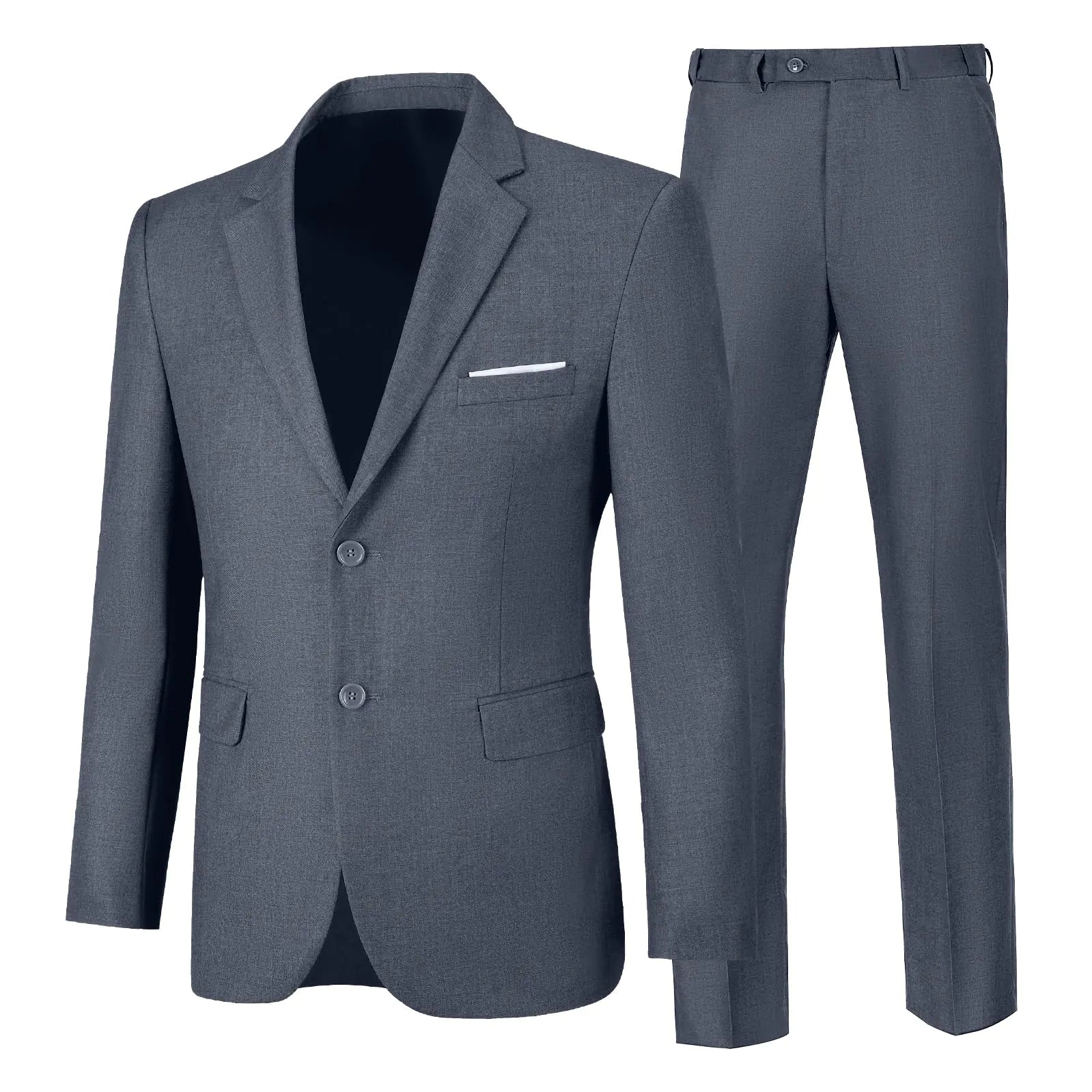 Mens Business Suit 2 Piece Slim Fit Dark Grey Homecoming Suits for Young Men Tuxedo Jacket and Pants Sets