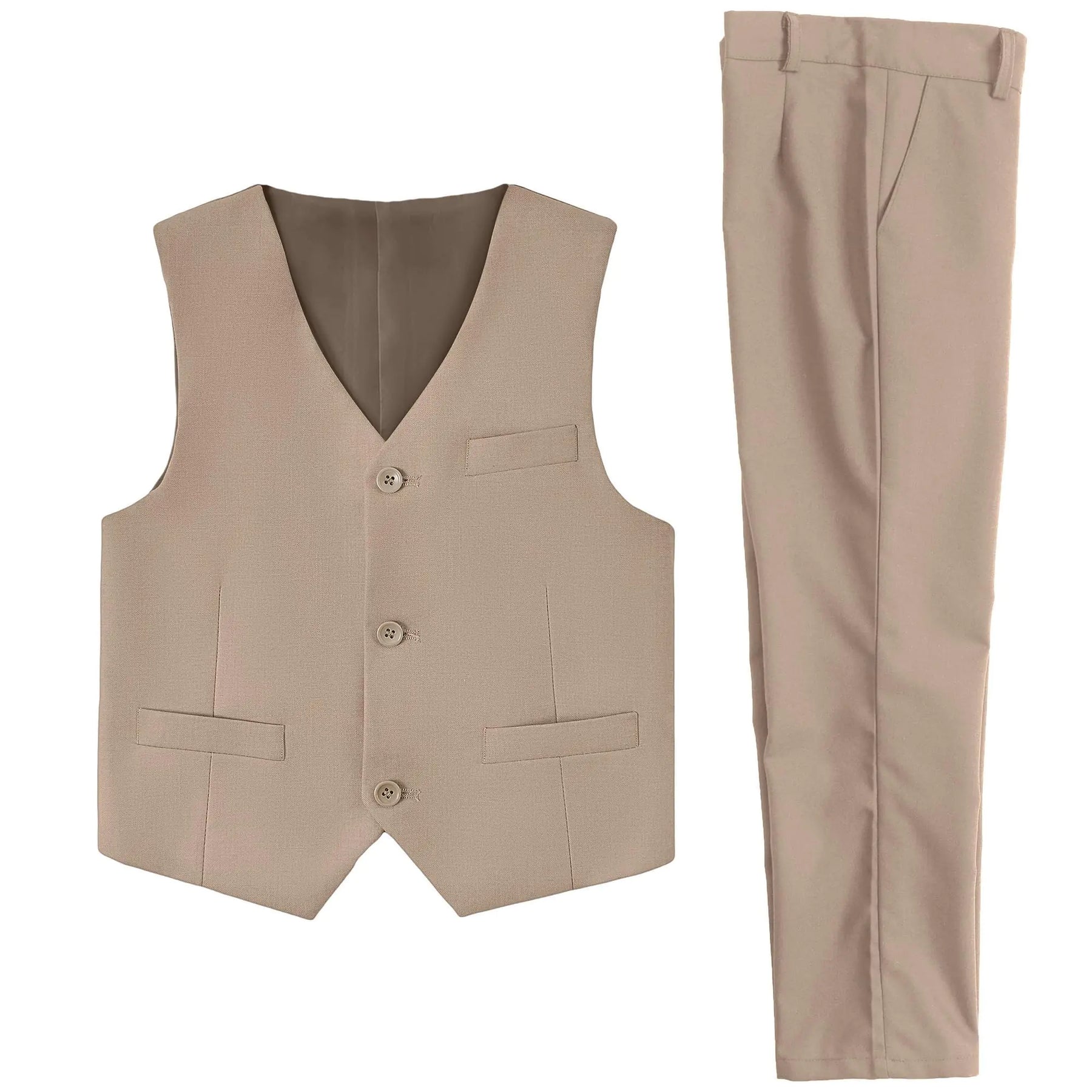 NaineLa Suit for Boys Wedding Formal Tuxedo Vest Set Big Boys Kids Khaki Slim Fit Dress Prom Suits School Uniforms Size 14