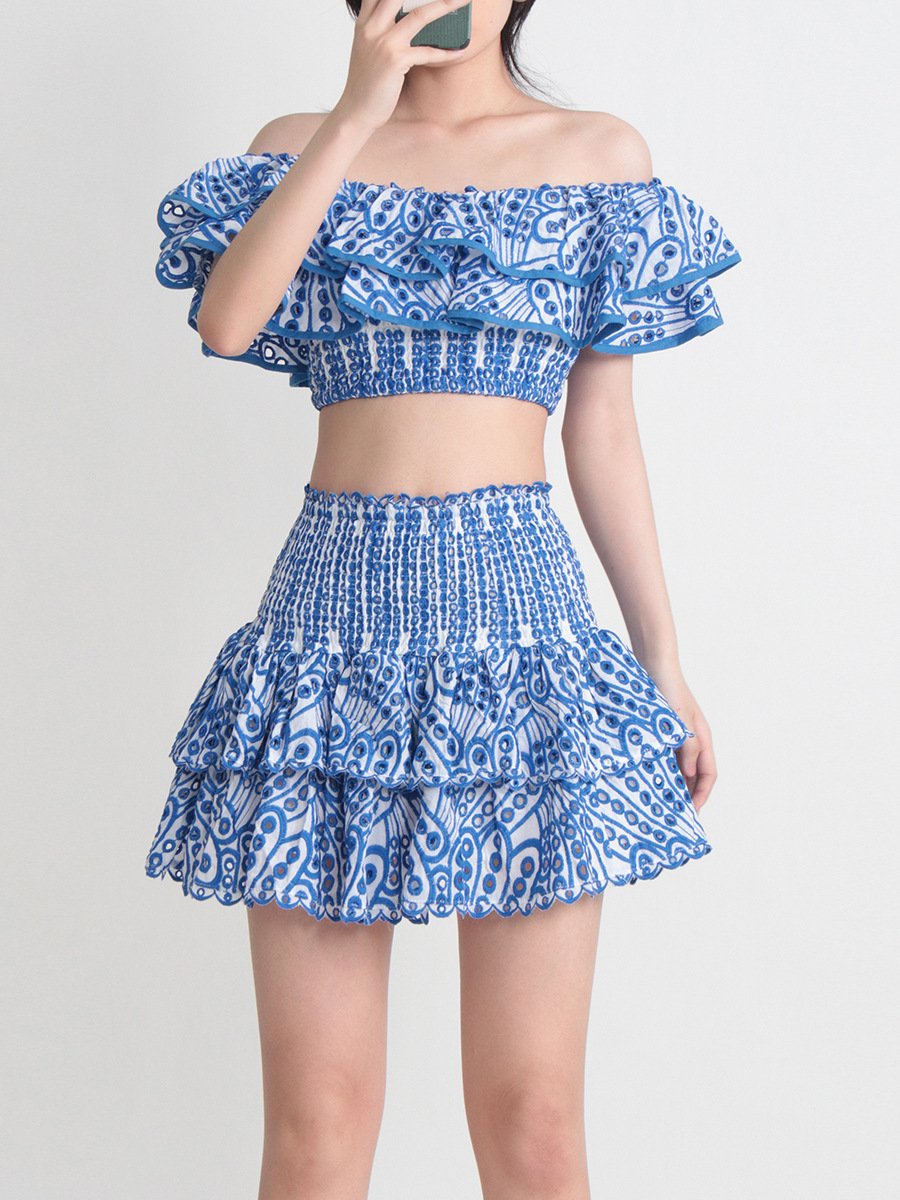 The artistic retro style and delicate embroidery details enhance the outfit's appeal, while the ruffle sleeves add a touch of femininity. Whether you're headed to the beach, a picnic, or a casual day out, this outfit will keep you looking chic and feeling fabulous.