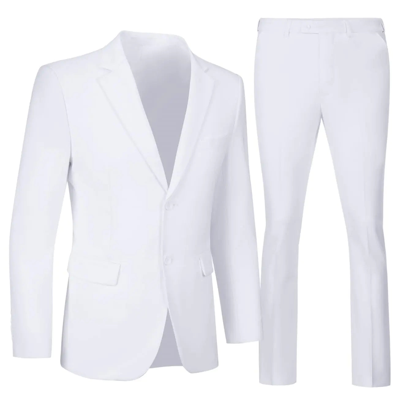 SISAVE Mens White Wedding Dress Suits for Men Slim Fit 2 Pieces Groomsmen Tuxedo Jacket Pants Set Homecoming Outfits M