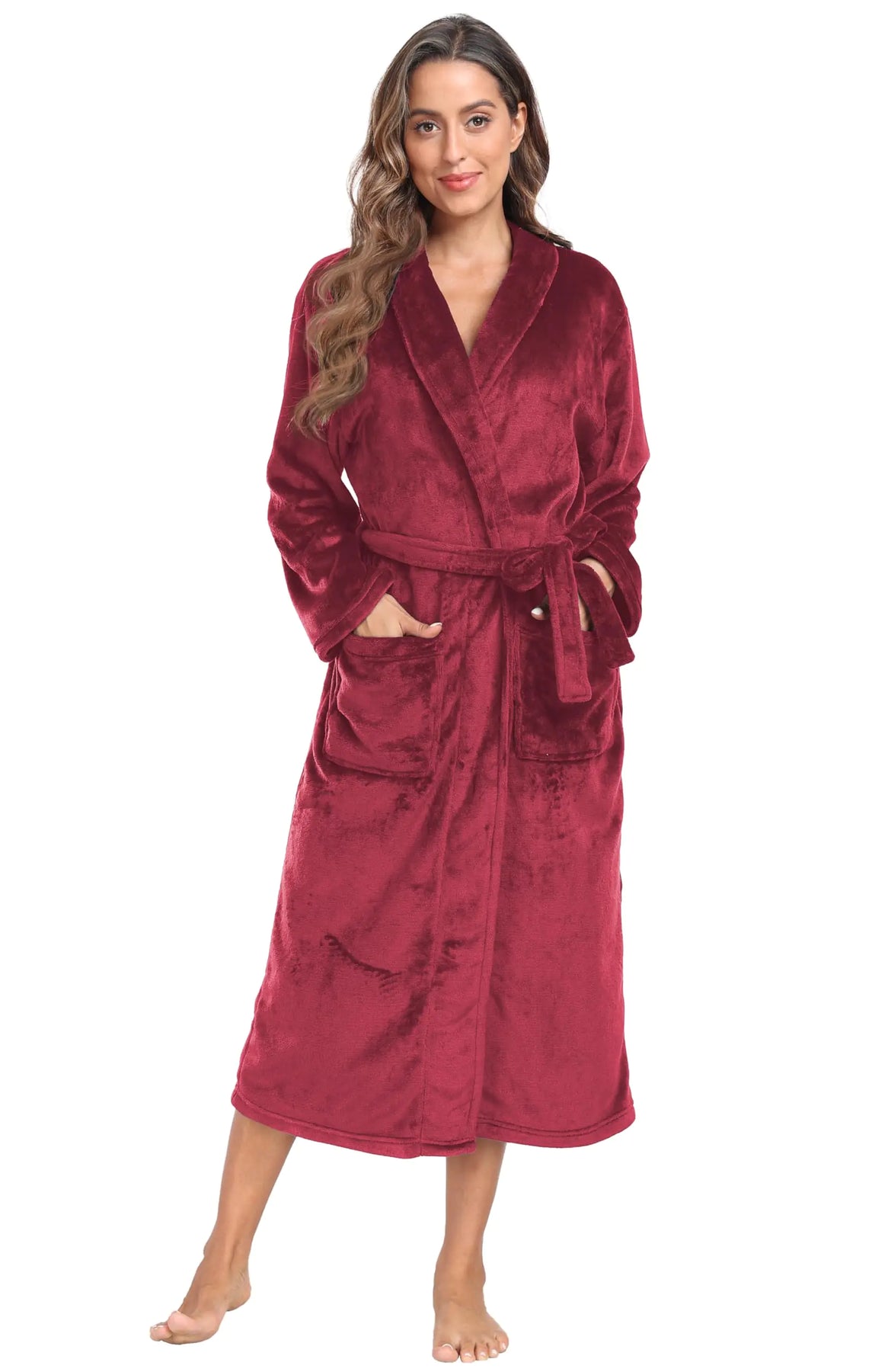 [Womens Fleece Robes: Our Fleece Long Robes are made of 100% Polyester quality plush fabric super soft warm fluffy and lightweight. Very comfortable whenever you wear it Shawl Collar Plush Bathrobe: The soft bathrobe features shawl collar mid calf length long sleeves an inner tie and adjustable waist belt to keep firmly. Two front pockets can put cell phone keys wallet and other small objects things very convenient in daily life Colors & Size: Solid color bath robes in 7 colors come and choose your favorite color! S/M L/XL 2XL/3XL for you to choose. Due to the shooting light there will be a little color deviation "Perfect Gifts: These plush bathrobes are soft to the touch and will keep you warm as you relax at home. Nice gift for yourself girlfriend wife mother sisters or friends. Perfect choice as Christmas Valentines Day Bridal Party Thanksgiving Birthday Mothers Day gifts" Easy Wash: Machine Wash separately in cold water tumble dry low]