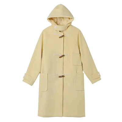Women's Yellow Wool Coat with Oxhorn Buttons
