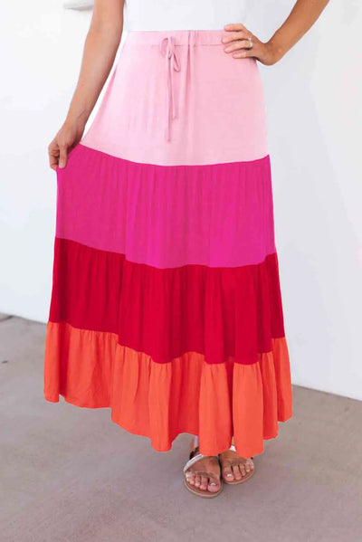 High-Waisted Pleated Skirt with Gradient Mesh Design