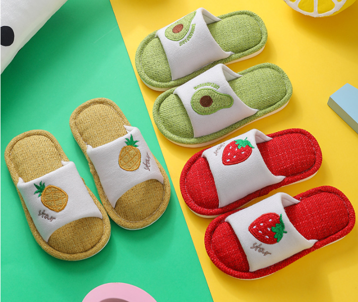 Crafted with a soft cotton upper, these slippers ensure breathability, making them perfect for use in every season: summer, winter, spring, and autumn. The playful cartoon patterns featuring popular elements like strawberries, carrots, pineapples, and avocados are sure to bring a smile to your child's face.