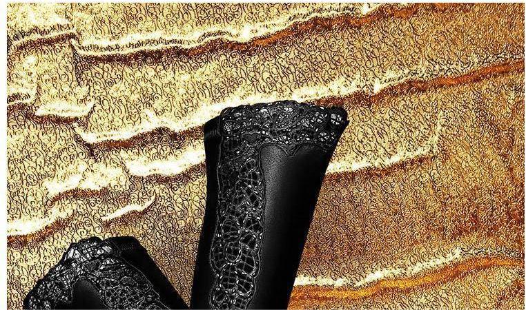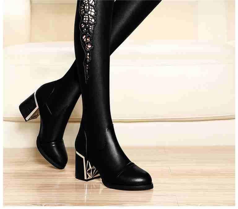 With a boot height of 50cm, they provide ample coverage while maintaining an alluring silhouette. Crafted from high-quality elastic leather, these boots promise durability and a snug fit that adapts to your foot's shape. The short plush fiber lining offers warmth and comfort, perfect for chilly days. Plus, the anti-slip rubber bottom gives you the traction you need to confidently navigate any terrain.