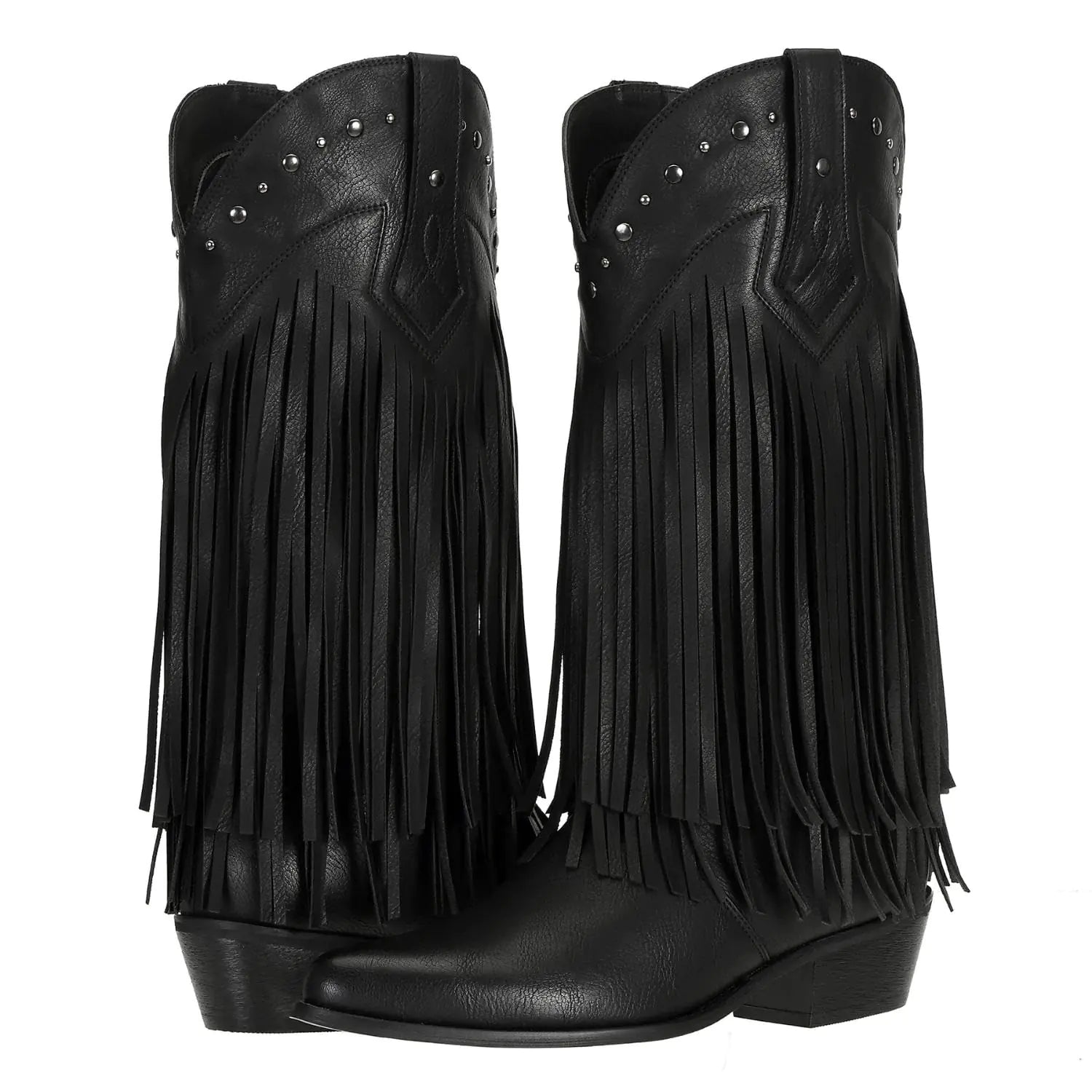 DescriptionThe SheSole Womens Fringe Cowboy Boots are inspired by traditional cowboy boot and modern fashion trend designs giving them a look that is never going to fade from style. You can use them for everything farm chores riding running errands they are very versatile .Theres no limit to how you can style these classic western boots and their quality ensures youll have them to mix and match with your ensembles for many seasons.