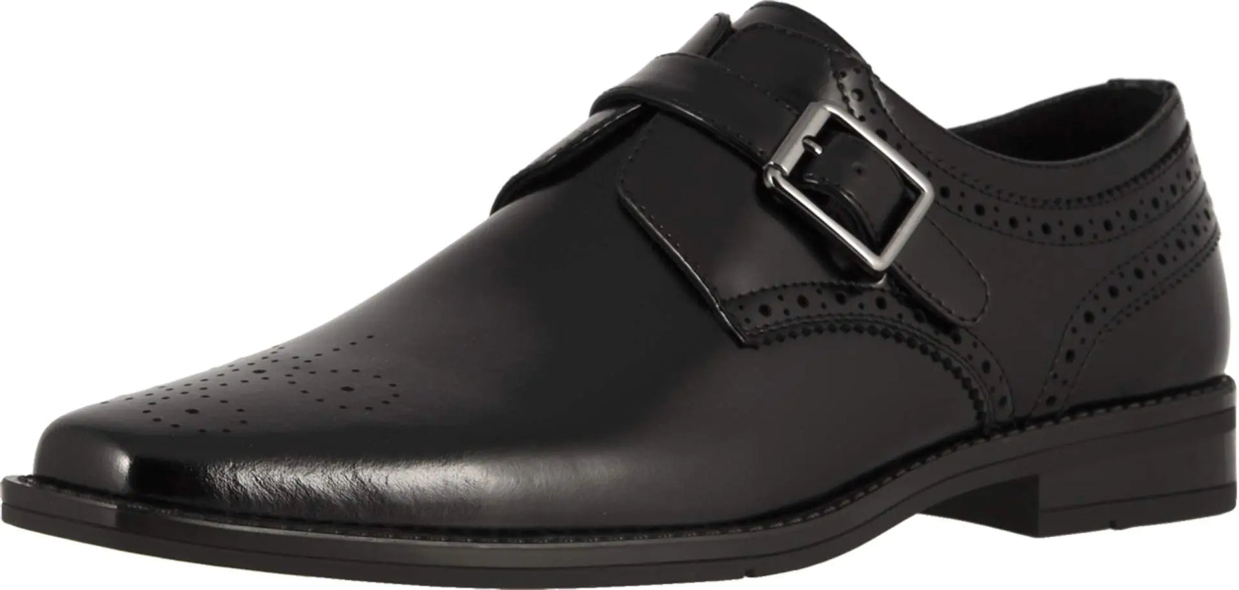 DescriptionThe Stacy Adams Kinsley Plain Toe Monk Strap has a modern profile with a chiseled toe and features intricate perfing details on the smooth leather upper and a gunmetal buckle. A shoe that oozes confidence when you are ready to take on the world slip on the Kinsley.