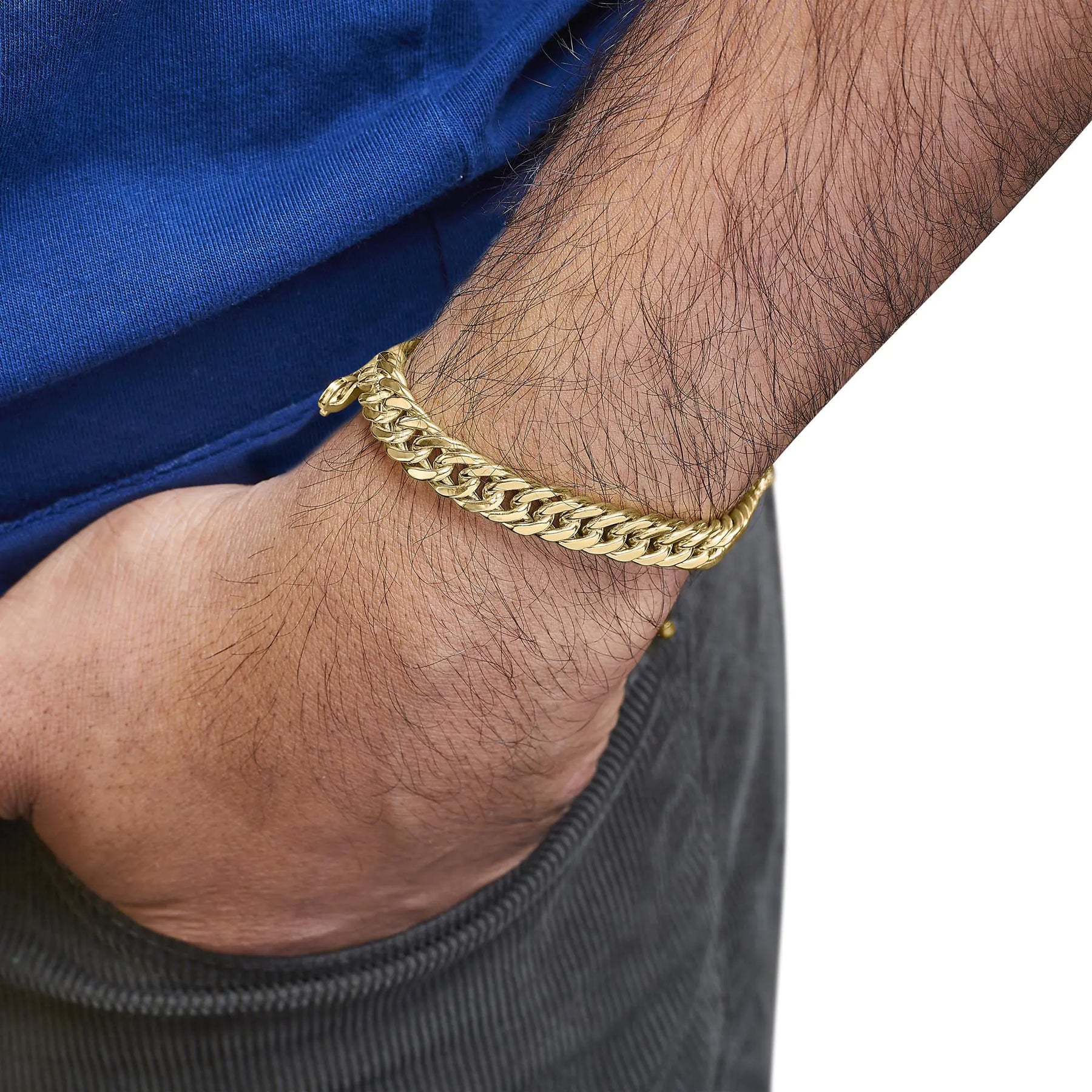 Indulge in luxury with our exquisite 10K Yellow Gold Cuban Link Bracelet, a timeless piece that exudes elegance and sophistication. Crafted from gleaming 10K yellow gold, this bracelet is a statement of refined style and impeccable craftsmanship. While this bracelet does not feature diamonds or gemstones, its classic Cuban link design and high-quality construction make it a must-have accessory for any man who appreciates timeless jewelry. The 8.5-inch length ensures a comfortable fit, while the lobster claw clasp provides security and ease of wear. Elevate your look with this stunning Cuban link bracelet, a versatile and enduring addition to your jewelry collection.