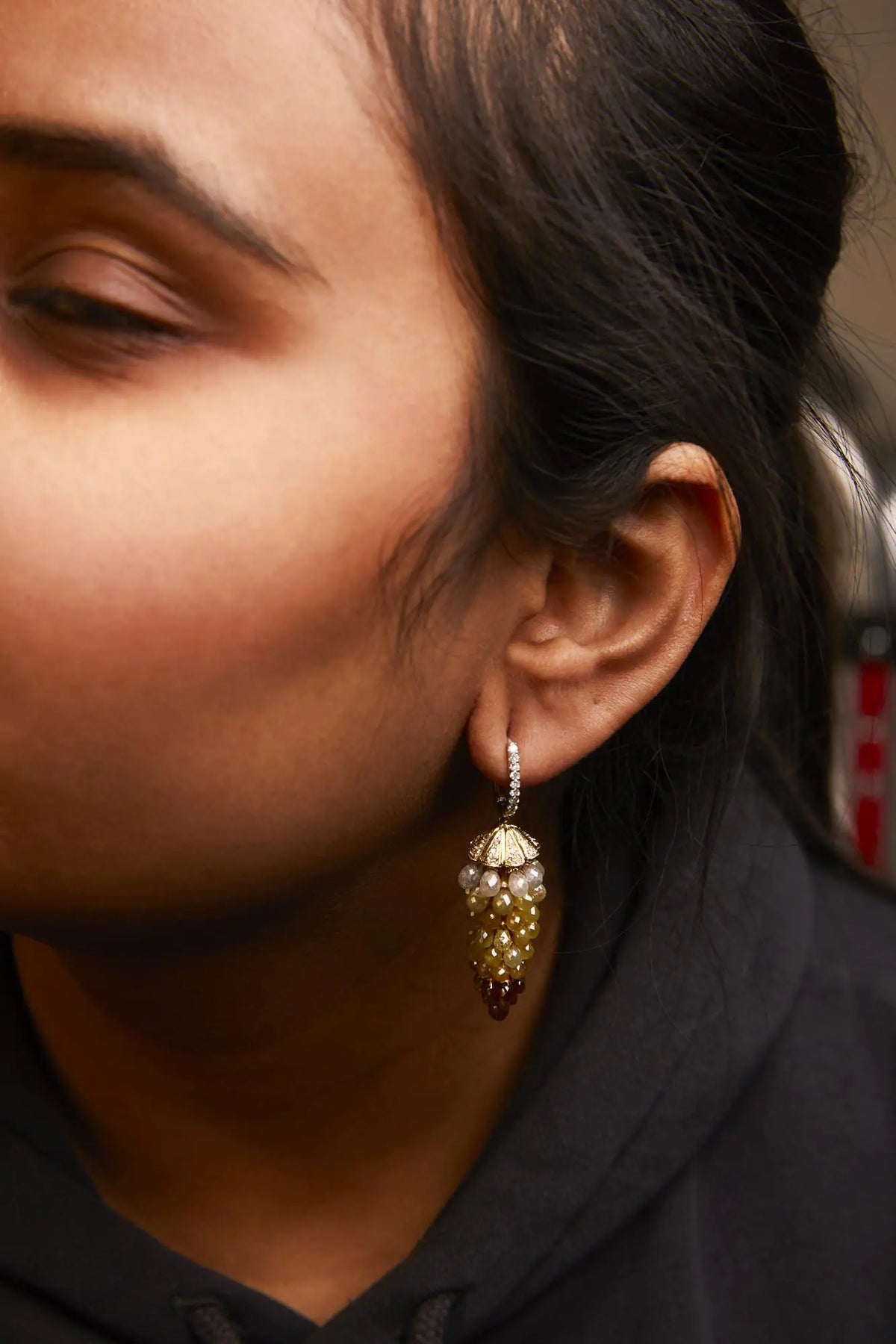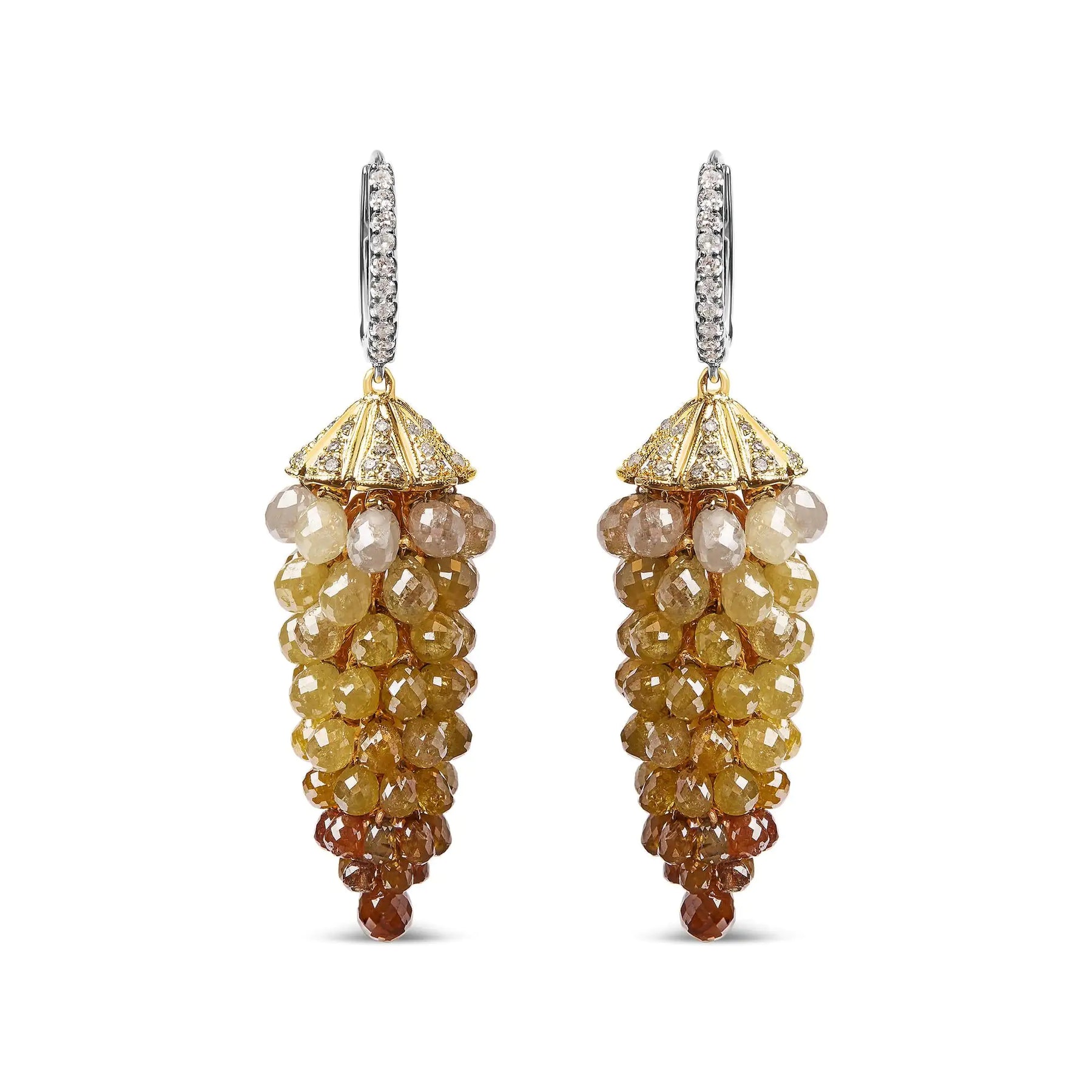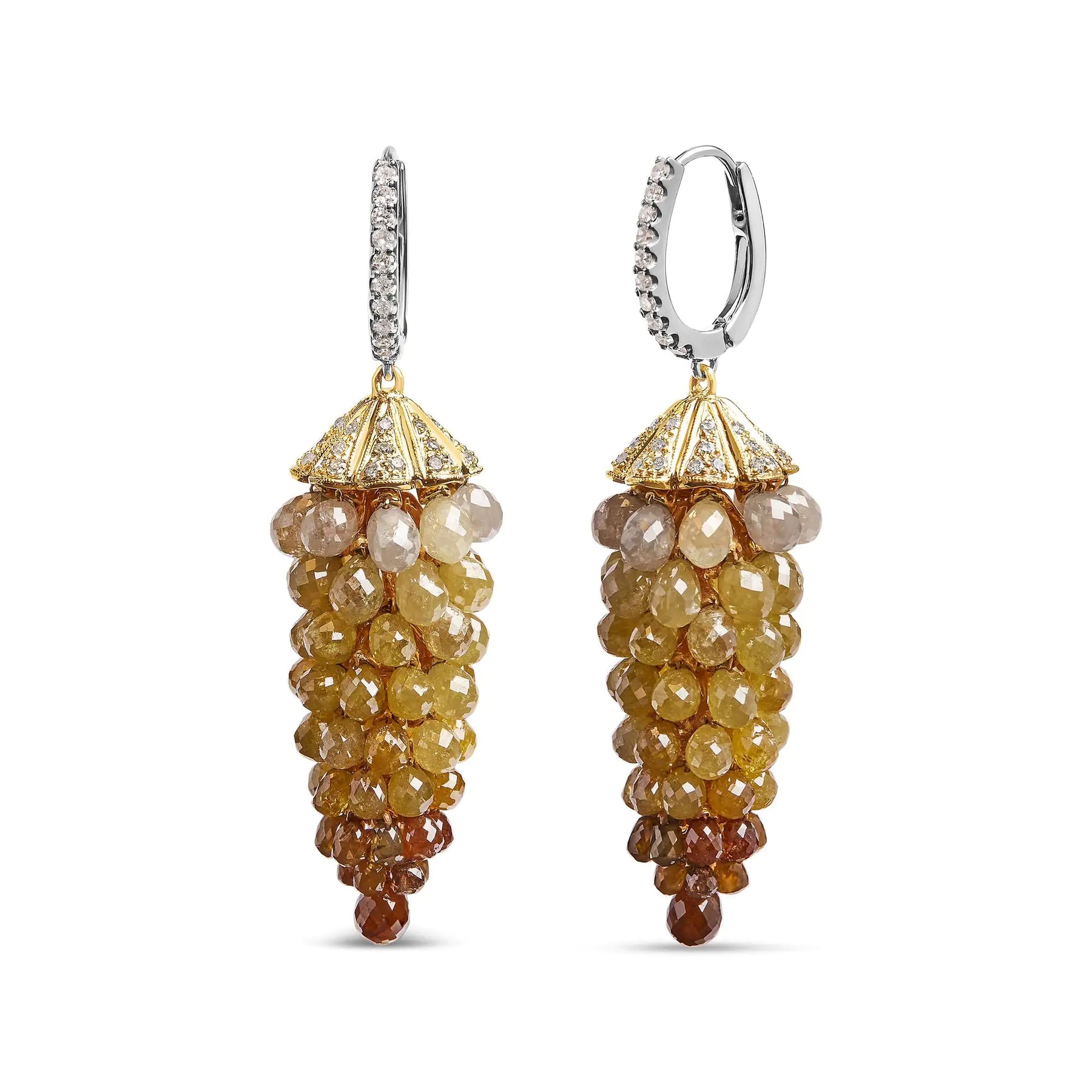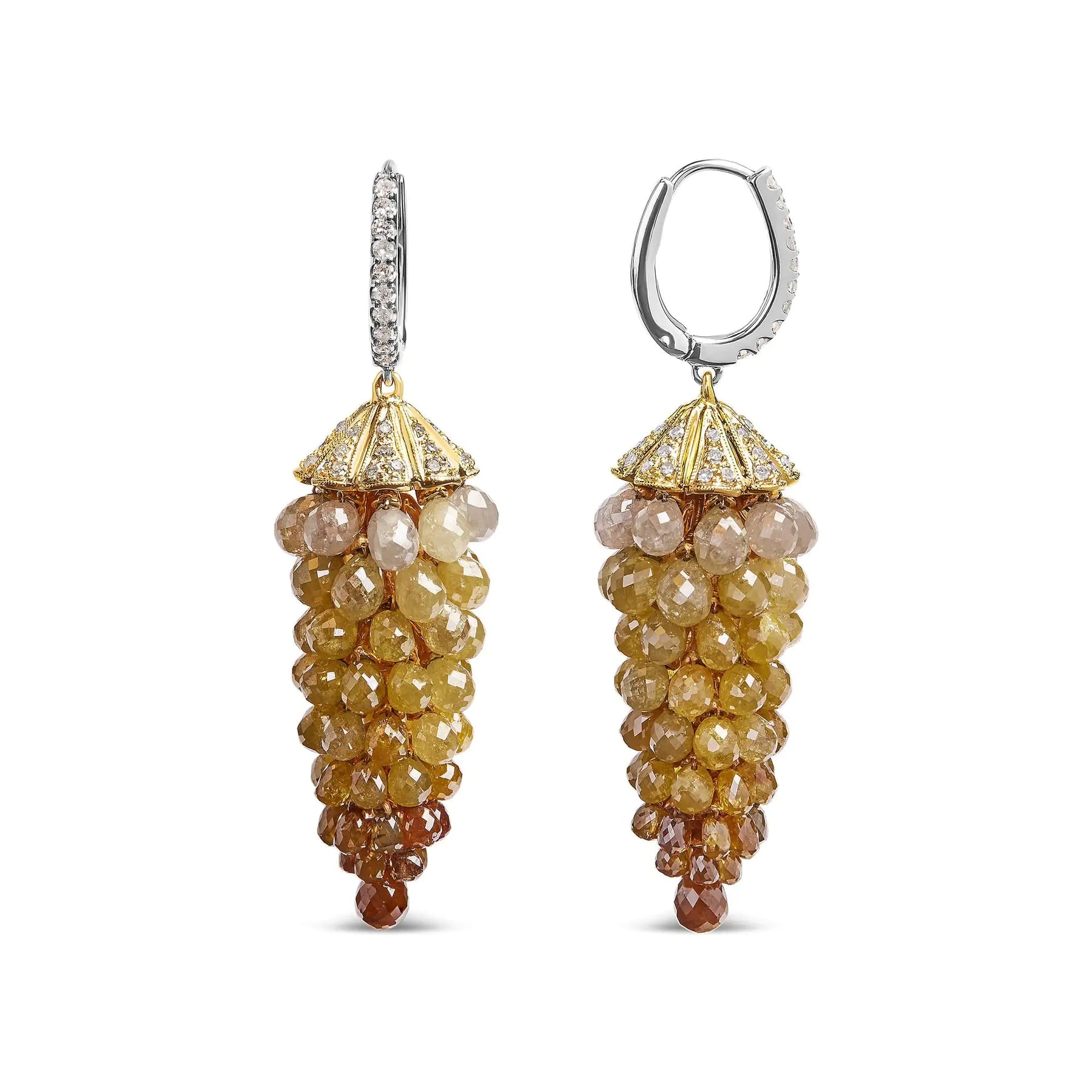 14K White and Yellow Gold 38.0 Cttw Mixed Fancy Color Rose Cut Diamond Honeycomb Drop and Dangle Earring (H-I Color, I3 Clarity)