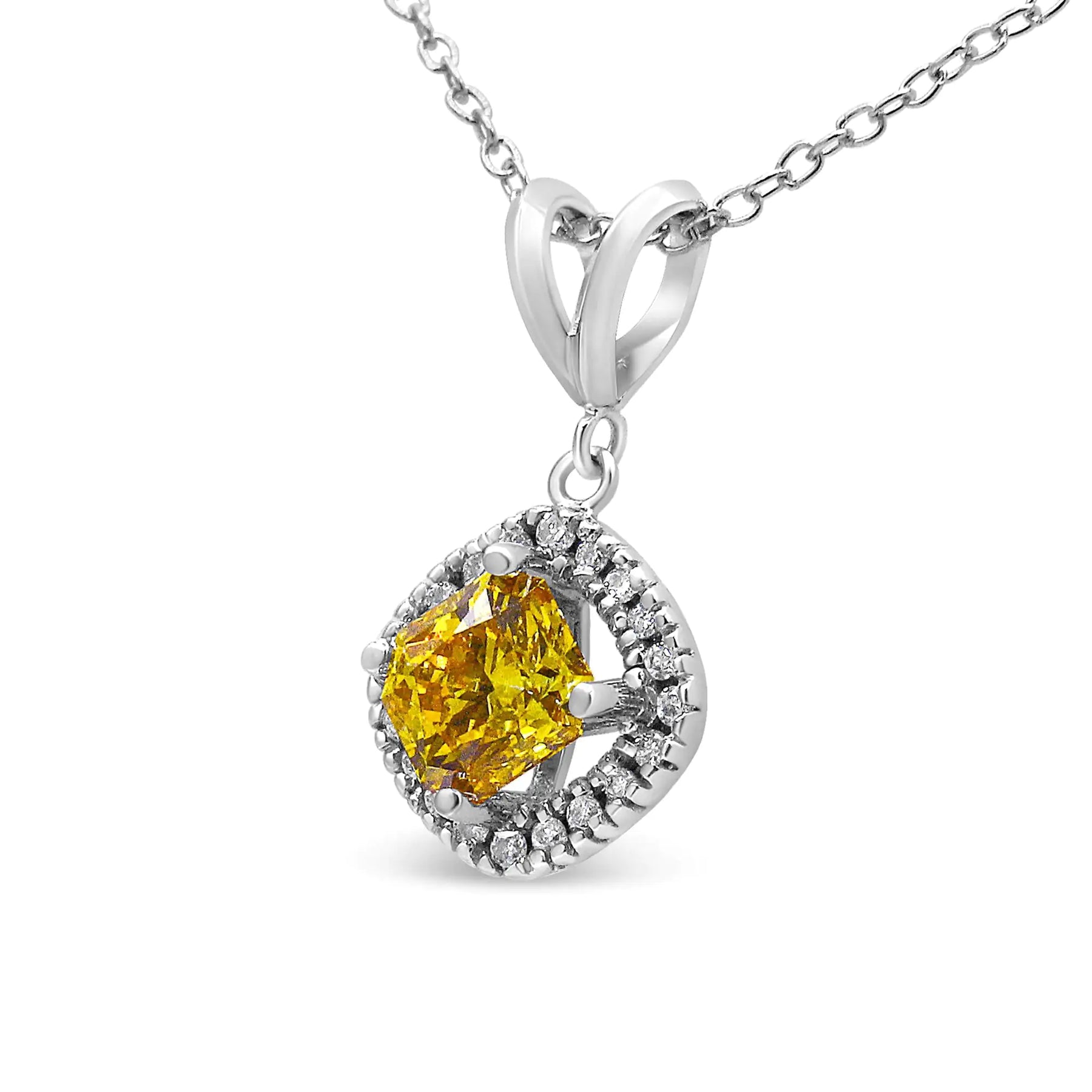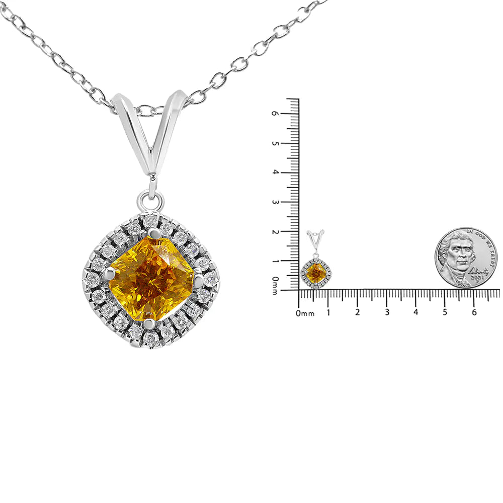 14K White Gold 1 1/5 Cttw Yellow Radiant Lab Grown Diamond Floating Halo Rhombus Shaped 18" Pendant Necklace (Yellow/G-H Color, VS1-VS2 Clarity)