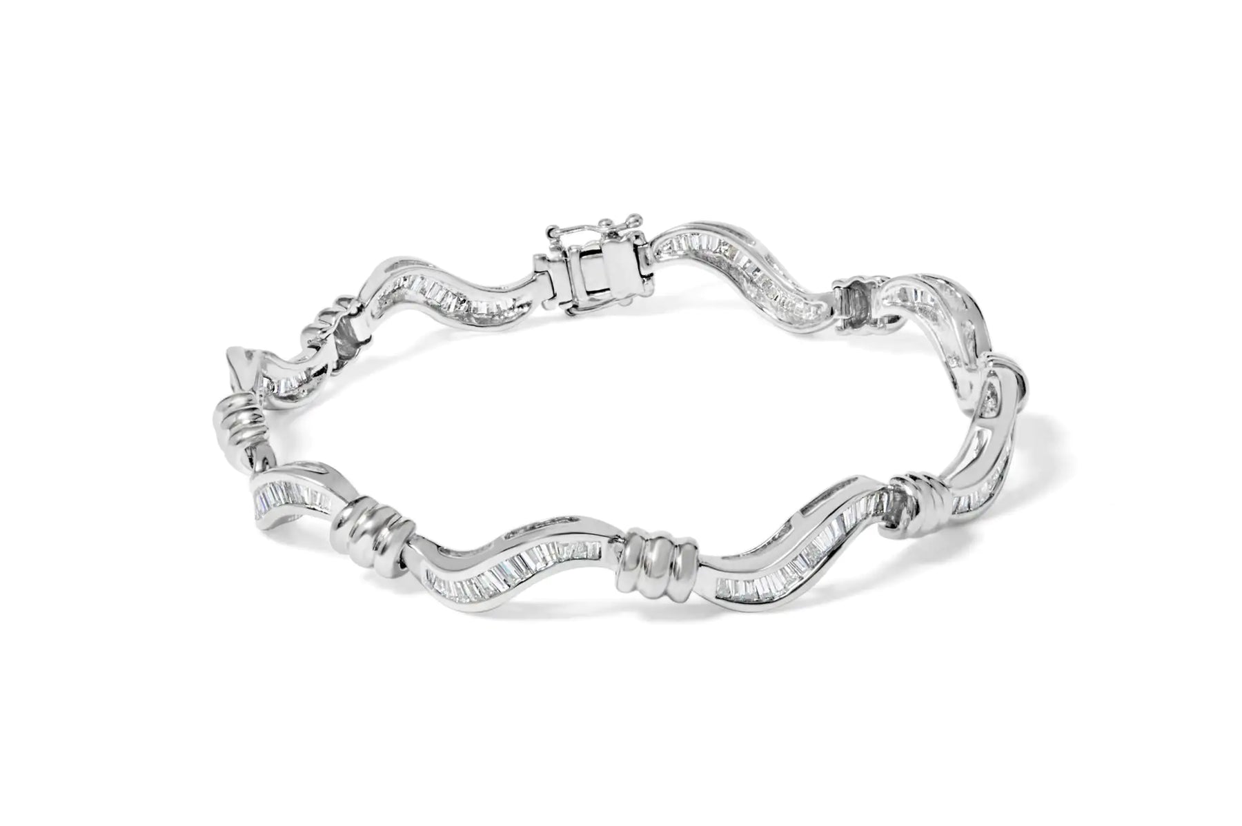 14K White Gold 2.00 Cttw Baguette-Cut Spiral Link 7" Bracelet (G-H Color, SI1-SI2 Clarity)