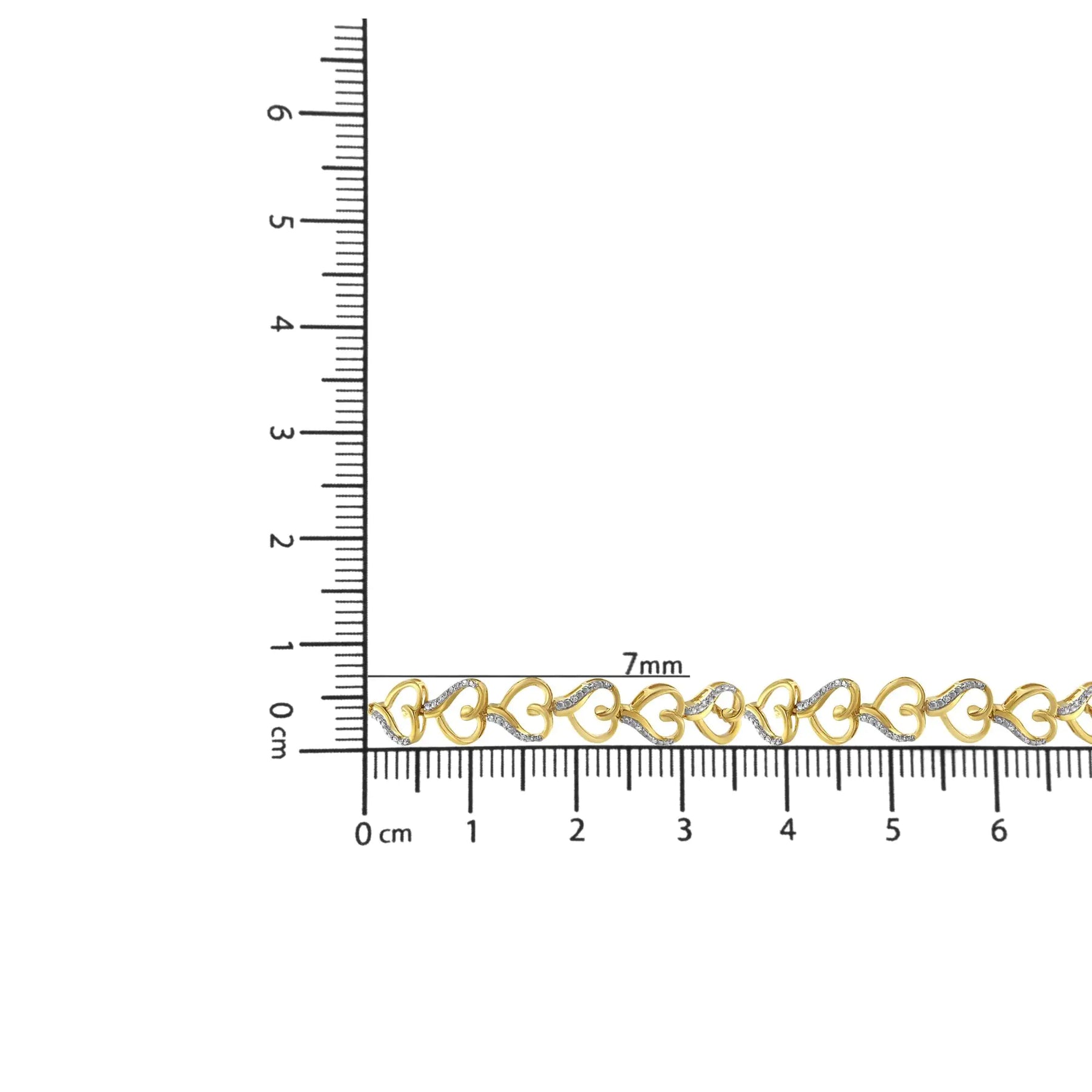 Love is all over this exquisite bracelet. Six heart shapes connect to one another in this 14k yellow gold plated sterling silver bolo bracelet. Each heart is created by a single yellow gold ribbon that twists and flows to create the shape. One side of the heart is accented by silver beading accented with two glimmering round cut diamonds. 1/10ct TDW of diamonds are displayed in this adjustable bolo bracelet design.