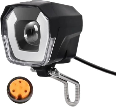 Electric Bike Headlight for Night Riding 3 Pins Female Connector LED Front Light 24V 36V 48V 52V Waterproof Ultra Bright Bike Safety Light for EBike Mounting on Front Fork